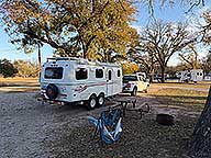 I finished breakfast & my coffee by 9:15, and left the park by 9:30. While the last 20 miles was on I 10, most of the drive was on US & TX roads. Lots of 4 lane sections, and the 2 lane sections had passing lanes every 10 miles or so. Heavy traffic in Austin & Fredericksburg. I stopped at the HEB in Fredericksburg and as usual am amazed by the size of the store. Their frozen food section didn't have much vegetarian stuff, but hey, I'm in Texas! The heavy traffic & doing 65MPH on twisty secondary roads didn't help my gas mileage - 10.2MPG for the drive.