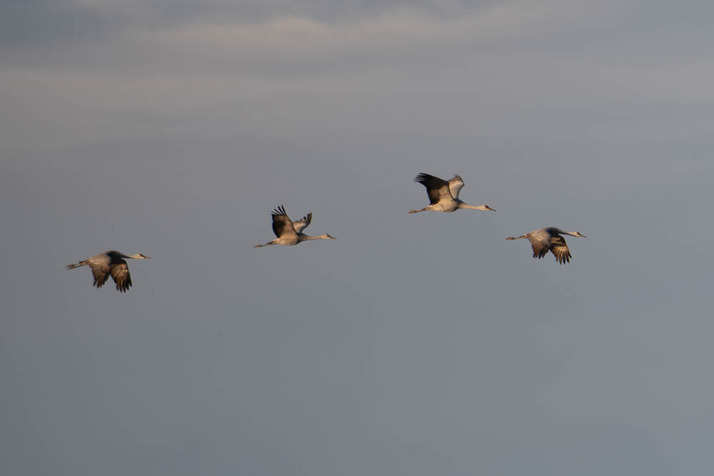 Around 2:00 I went for my morning walk. Not as many cranes in as yesterday, but since I heard lots of them arrive around 5:00 yesterday, I'll make another round then.