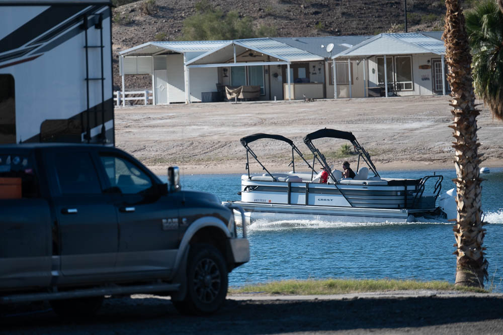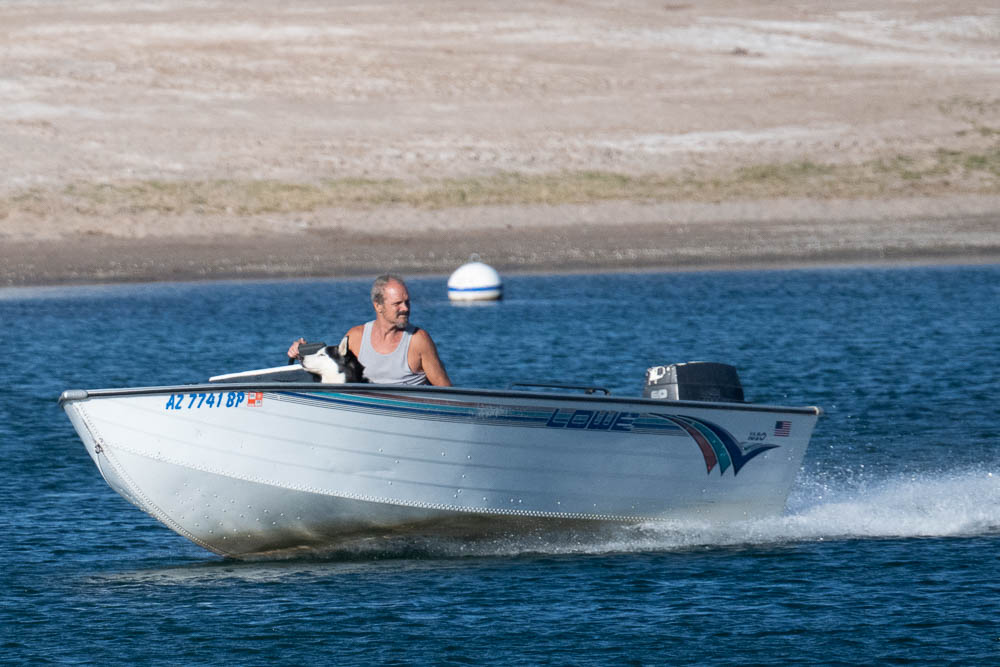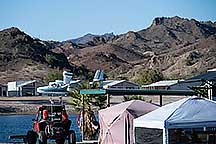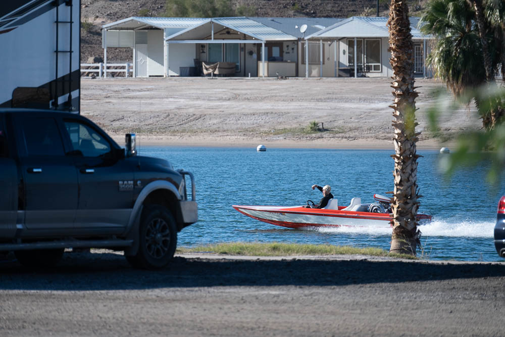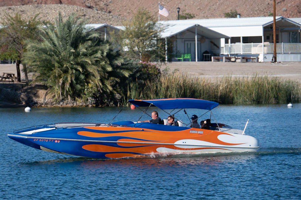 Back at the trailer I grabbed the camera and took a couple more hummingbird photos, and one of what my iBirds tells me is a Brewer's Blackbird, then a couple of photos of some of the boats traveling on the Colorado River. There is a seaplane that has landed (and taken off) twice since I've been here, but I haven't had the camera handy to get a photo. I also included a photo of the California side of the river.
