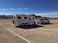 I headed out around 11:30. No line at the dump station, and no one behind me. An uneventful 11 mile drive to the rodeo grounds. I'm in B22, a dry 20' X 40' section of a parking lot for a week. A $250 donation to the Sara Rodeo Grounds for 7 nights or $35.71 per night. I had to raise one side 2 1/2" and drop the tongue 3". You best be comfortable with a horsey smell since there are horse droppings all over the parking lot. The ground is very hard - Tough to stake down the mat & I had to use a tent stake to drill holes for the hummingbird feeder & the camping sign.