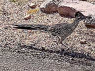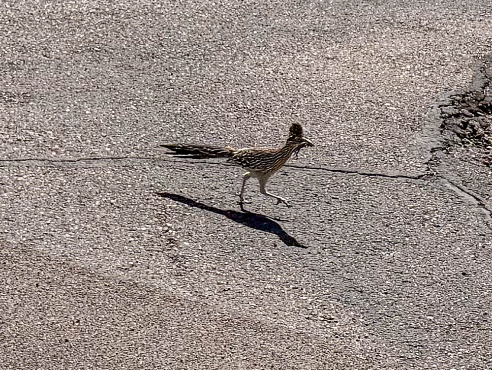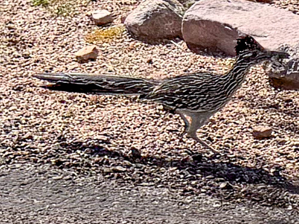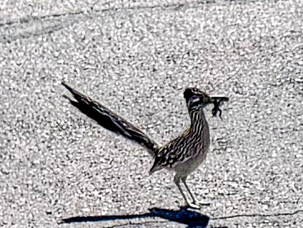 Another warm night with the furnace only firing up twice during the early morning. After my walk & breakfast I sat outside reading. I went for a walk to the dumpsters a little after noon and a roadrunner ran by carrying lunch. All I had was the iPhone so not the sharpest images, but you use what you have.
