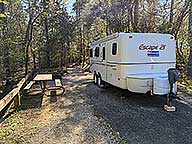 I arrived at the park around 2:30, signed in and found site 20. A back in, water & electric site on asphalt with a tent pad, grill/fire ring with benches, general purpose hook, and a picnic table. $20.00 per night including a $4.00 per night individual person charge. I'm here for 3 nights. The park is within horn distance of a railroad with lots of crossings, so lots of tooting. Otherwise, other than the typical kid noise, the park is quiet. Bathrooms are a short walk away.