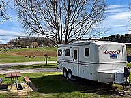 Most of the drive was on I 81. Busy, but no stopped traffic. I arrived at Fort Chiswell RV Park around 1:30. I'm in site 10, just big enough for the truck & trailer. 1/2" off side to side & I had to lower the tongue 2". The site is a pull through full hookup on gravel with a picnic table. I'm here for 4 nights at $60.00 per night with a Good Sam's discount. Lots of cows on the hill behind me.