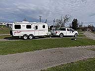 I'm in site 23, a full hook up site needing 1 1/2" side to side & a 1" rise on the tongue. The site is on gravel, has a fire ring but no picnic table. I don't know if they tables when they are open since that won't be for another 3 weeks. $48.00 for one night., and it appears that so far I'm the only one in the place. They only have a few sites set aside for overnighters. There are bathrooms, but they are locked.